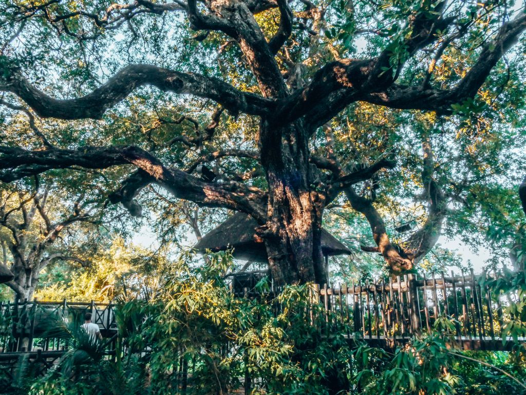 A dance with monkeys, a rise in accordance with the sun rays, a magical slender through the trees on an encompassing wooden pathway enrooted and entangled amidst ancient trees breathing life.