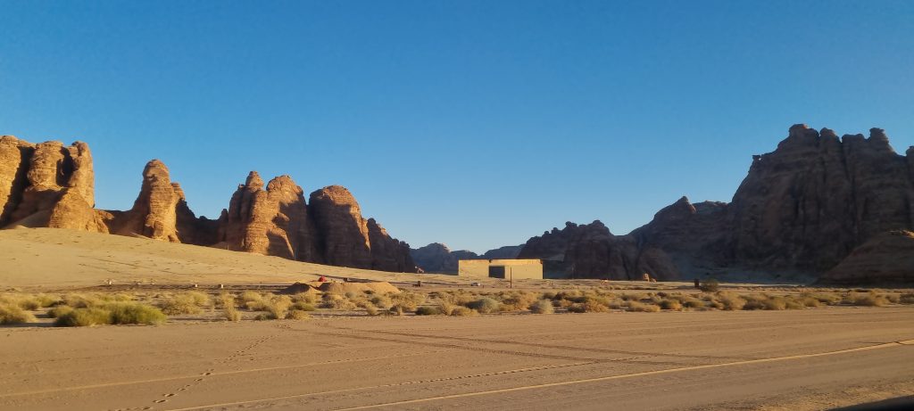 Amidst Alula’s historic and encompassing beauty I drive with my friends. All I can see are tones of reds from the unwavering mountains of the Ashar Valley, todays picturesque blue sky and an endless paved road. The Ashar valley to my first sight seems like a sanctuary of enriching yet somehow simplistic beauty with luxury glamping tents camouflaged in the far distance of the Valley. Utopia.
