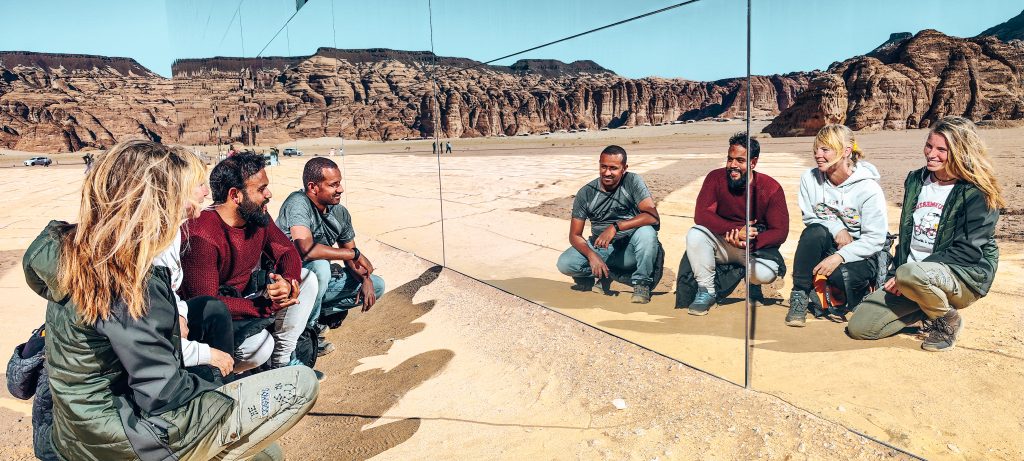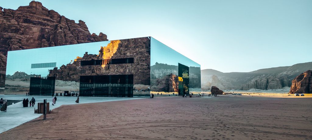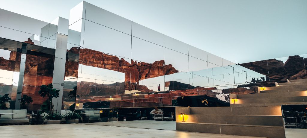 The only answer to this mystery is Maraya. The world biggest mirror building, a state of art and an architectural artistry of 9,740 mirrored panels. Placed amidst the Ashar Valley, Maraya, translating from Arabic into reflection, reflects the surrounding nature of its mirrored panels making it part of the very existence of nature. Not only part of it, but amplifying the beauty of the Ashar Valley, the beauty of AlUla through its mirrors.