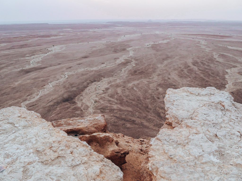 A place where you feel like a king looking down on his land having a full overview. The Tuwaiq Mountains that for long have hidden the presence of the Edge of the world come to an end. Surrounded by different tones of browns, skin tone, earthy colours and but little green.