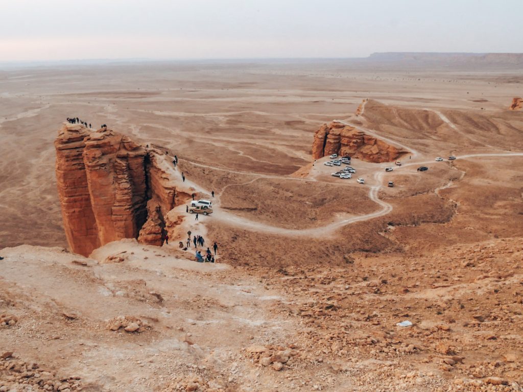 Two extremes, two philosophies, two beauties. At the Edge of the World, where the horizon can be seen without boundaries, the number of flying birds in the sky can be counted, and an empress’s view over the land of Saudi Arabia is gifted to everyone who dares to take on the adventure.
